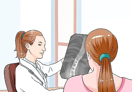 Watch for fractures. In many cases, a symptom of osteoporosis is a fracture, caused by loss of bone density. You may fracture a bone after only a minor incident. For instance, some people fracture ribs after sneezing or coughing. However, the most common fractures are hip, wrist, and vertebrae fractures. Keep in mind that women are more at risk for osteoporosis than men, due to low levels of estrogen during menopause. Also, the older you are, the greater the risk of developing osteoporosis. Speak to your healthcare provider about taking medication to increase your estrogen levels, if applicable.
