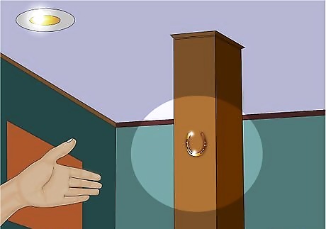Find a place to proudly hang your horseshoe (preferably inside) you can rest it on a shelf or even hang it up with a nail. (make sure the horseshoe looks like the letter U not the letter n for good luck)