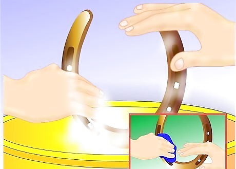 Clean the horseshoe. Try to get all the dirt off the horseshoe with soap and water you can even polish it if you want.