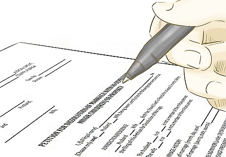 Choose an appropriate type of case. If you are married but do not want to get a divorce, you may be able to get a legal separation or have your marriage annulled. In addition, if you are in a domestic partnership, Maine will allow you to terminate it in certain circumstances. To get a legal separation in Maine, you can petition a local District Court after you and your spouse have lived apart (or have a desire to live apart) for 60 consecutive days. The petition must be filed in the county where you or your spouse reside. If you are granted a legal separation, the court will divide property, allocate support payments, and make decisions about children. However, you will still be married to your spouse. To get your marriage annulled, you will have to petition a court and provide evidence that the validity of the marriage is in doubt. For example, one of the party's may have been under the legal age, may have committed fraud in order to induce the marriage, or may be unable to consummate the marriage (i.e., have sex). If your marriage is annulled, it will be as if it never occurred in the first place. To terminate a domestic partnership, you or the other party must marry someone else or file a consent to termination or file a civil case to have it terminated.