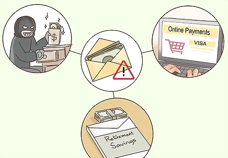 Understand the Limits of the Envelope Budgeting System. This is a great training tool, and for some people it is exactly what is needed to keep on budget. But this is still supposed to be a temporary use situation, not a permanent lifestyle. Living out of envelopes does have some drawbacks: Security: If your purse is stolen, car broken into, or roommate turns criminal, stolen money has very little security. A debt card at least has a number, a PIN and if it is stolen and used, it can be "frozen" to protect from further misuse. Cash has none of those protections. Lack of Convenience: Using cash for everything may mean you cannot make an online payment. You cannot transfer money to a spouse in an emergency. Or an automatic payment online. Or if your car breaks down, and you need emergency repairs you may not have a way to pay for it. This can be problematic. Complicated Money Situations: This system works best for people with relatively straightforward financial situations. This may work wonderfully for a 23 year old single female learning to budget for the first time. However, it does not work so well for more complicated financial situations. A 62 year old father who owns a dog grooming business and saving for retirement should likely not be dealing exclusively in cash. This may not be a long-term organizational solution. For some individuals, this really is the best way to organize funds. However, the envelope budgeting system is usually best used as a transitional system. Eventually, you should be able to get a sense of how to keep within budget and not need all of those envelopes. It is best to use a banking institution. Some people do get by without a bank account, but going without one has drawbacks. There is security putting funds in a bank unavailable to cash as mentioned above. Maintaining a bank balance is vital in establishing credit. If you do not have a bank account, sending money orders incur fees that are much more than checks.