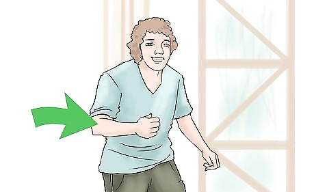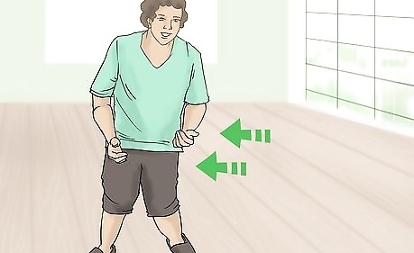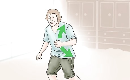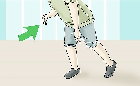 Start moving an arm. After you decide which arm to start the move with you will begin to move that arm upwards. The overall aim of the movement is to swing your arm up from waist level to a point that is by your head. Keep some of the following tips in mind as you move your arm: Your arm will be extended in front of you. However, don't keep your arm too tight or straight. The motion should be loose. You will swing your arm up from waist level. Bring the arm all the way up to head level. At the peak of the motion your arm will be bent at a ninety degree angle and your hand will be next to your head.