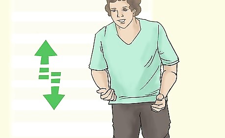 Add in head and chest movements. Although the jerk focuses on your arms you will also need to move your head and chest. These movements will both be small and will be timed with the motion of your arms. Keep some of the following tips in mind as you work to add these head and chest flourishes: Push your chest out whenever an arm is swung up to your head level. Sink your chest in when switching arms. Turn your head to face whichever hand you are swinging up to head level.