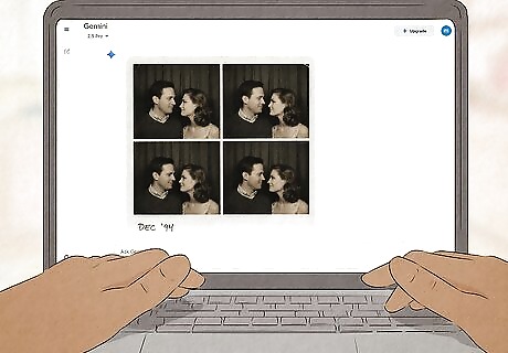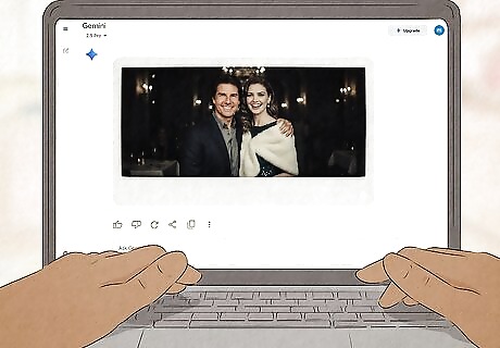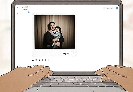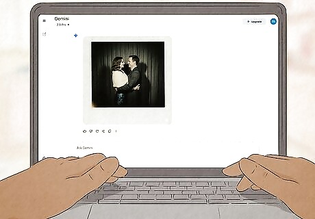 Press ↵ Enter, ⏎ Return, or the submit button. Gemini will take a few moments to create a Polaroid photo using the photos and description you provided. If there's anything about the picture you don't like, you can tell Gemini to make changes as needed. For example, if the photo doesn't look dark enough, say, "create the photo again, this time in a darker room." To download the picture, click or tap the image, then click the down-arrow icon at the top-right corner.