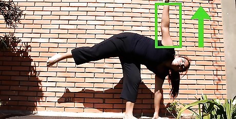 Point your right hand upward. You want to point your fingertips towards the sky. As you do so, open your torso slightly to the right. If you're able to do so while maintaining your balance, look at your right thumb.