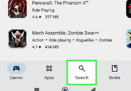 Tap Search. This is at the bottom of your screen with a magnifying glass icon. Skip this step if you want to browse categories instead. Instead, you can browse through the different categories that appear as soon as you open the Play Store.