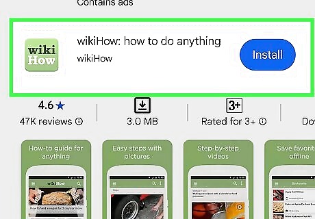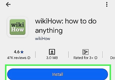 Tap INSTALL. It’s a button just beneath the name of the app. If the app is not free, the green button will say the app’s price instead of “INSTALL” (e.g., “$2.49”). When downloading an app that costs money, you may have to confirm your Google account password.
