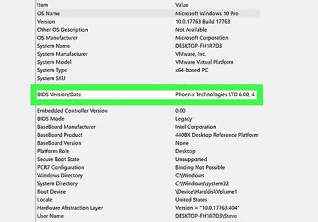 Check if your motherboard’s BIOS is up-to-date. You can do this by clicking on the search bar, pulling up the Run program, and typing msinfo32 into the search bar. This pulls up a new window with your system specs, including the version of BIOS your system is running. If your version of BIOS isn’t the latest version, go to the manufacturer’s website and try to locate the latest BIOS software for your motherboard. Updating your BIOS software is only recommended if you know how to do so and if you have a backup of your BIOS software prepared. Otherwise, improper setup could render your computer unusable.