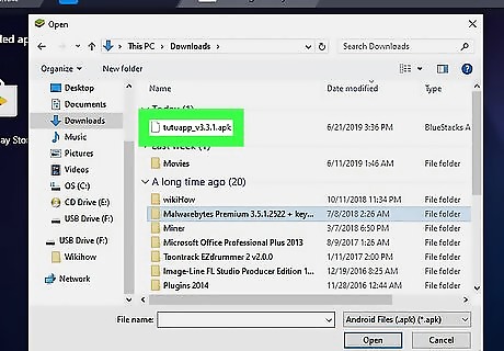 Click Install APK. You’ll see this in the lower right corner of the BlueStacks window. Your file browser will appear.