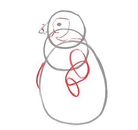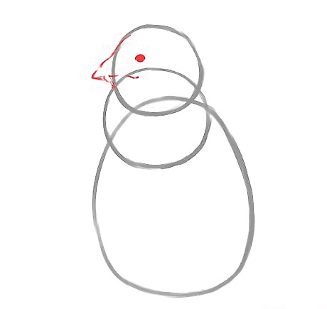 Draw a small circle for the eye. Add in a small beak on the same axis, with a faint line to look like a mouth.