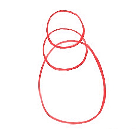 Draw the basic shapes of the body. Draw two fat circles and a large oval as shown. Sketch in guidelines for the features if you wish.