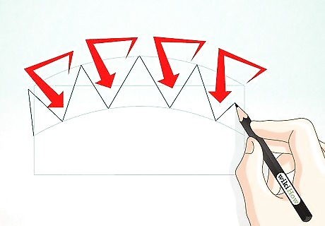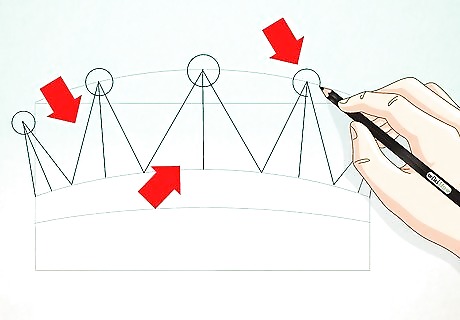 Draw 5 triangles across the upper curved line. Add small circles at the top of each triangle.