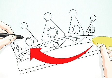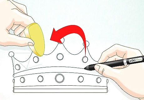 Add the details for the sides of the crown. Draw outer circles to make the circles look embossed.