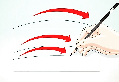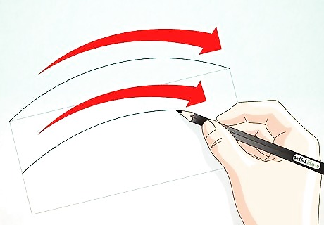 Add a curve connecting the upper left corner of the rectangle to the upper right corner. Draw two similar curves apart from each other near the bottom but inside the rectangle.