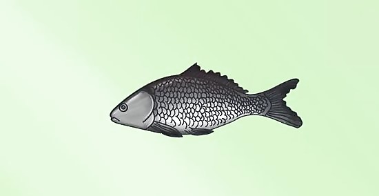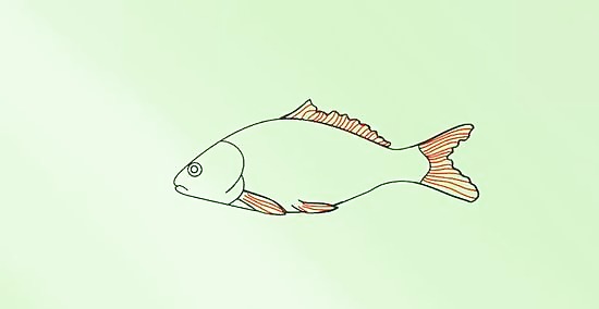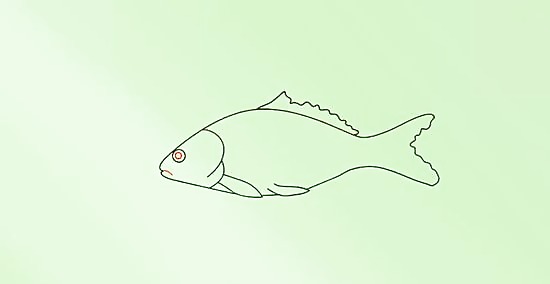 Erase the guidelines completely. Draw the dorsal fins with a wavy line. Draw one fin near the gill cover and the other fin close to the bottom edge of the fish. These fins should look similar to an irregular narrow V.