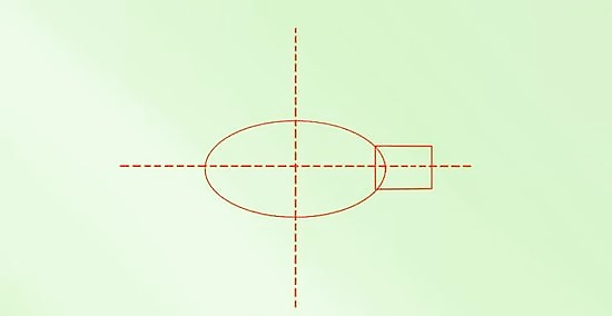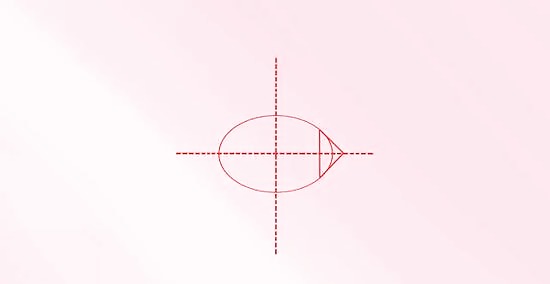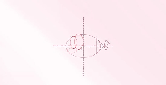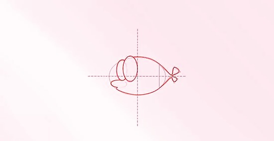 Draw a cross guideline to help align our shapes. Draw an oval and a rectangle guideline for the fish’s body.