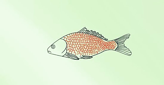 Erase the lines inside the fins and draw a circle for the fish’s pupil.