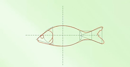 Use the outline to draw the final shape of the fish. Draw the tail with soft curves.