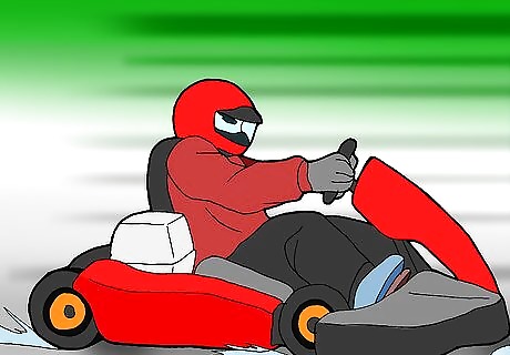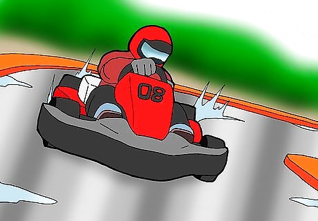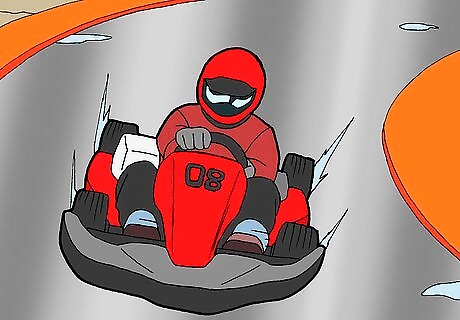 When you brake, hit the pedal in a short, sharp motion. This should be enough to get the rear tires to lock and bite into the track. A nice gentle push on the brake won't do it because it kills the kart. You want the kart to feel quite lively, and you need to get it working and biting so you can get a feel for the grip that is available. Also, you want to reduce the amount of time on the brakes and braking needs to be out of the way before you turn.