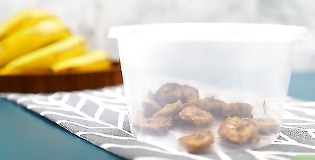 Arrange the dried fruit into an airtight bin or bag. Stack your banana chips in a sealable plastic bag or container, then push out any excess air. Close the seal or lid on the bag or bin to keep your dried bananas as airtight and fresh as possible.