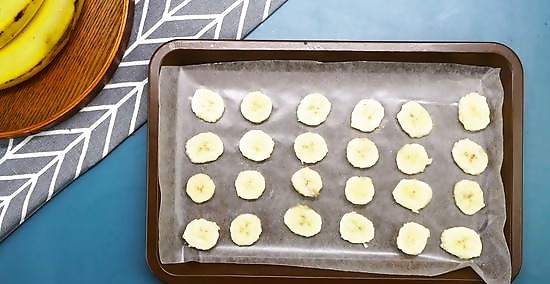 Space the banana chips out onto the baking trays in a single layer. Arrange your fruit slices on the tray so they’re several inches apart. Don’t let any of the chips overlap or touch, as this could slow down or hinder the drying process. If needed, feel free to use more than 1 tray.