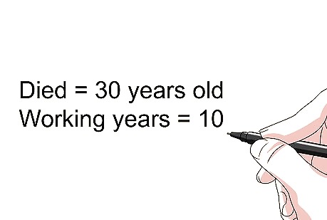 Calculate how many years the deceased person worked. Generally, a deceased person needs to have worked 10 years before they died for their survivors to be eligible for Social Security benefits. For younger workers, the Social Security Administration uses calculations similar to those used for disability benefits. For example, survivors could claim benefits from a young worker who died before the age of 28, provided they worked at least 1.5 years in the 3 years immediately preceding their death.
