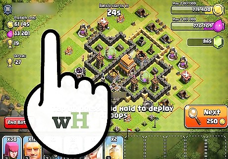 Train troops. Select your Barracks from the Map (the main game screen you see once the game launches), and tap the soldiers you want to produce. The kind of soldiers you can produce will depend mainly on the level of Barracks you have. If you’re just starting out in the game, you can start by producing Barbarians, which costs around 25 Elixirs to train.