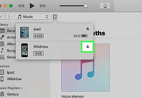Click ⏏ next to your device. Doing so will safely eject the device from your computer, allowing you to remove it from the USB cable.