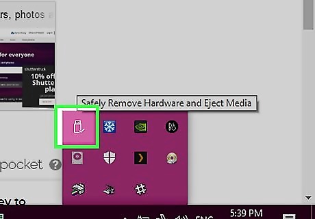 Click Safely Remove Hardware and Eject Media. It's a tiny icon with a usb plug and a green check box.