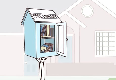 Build a little free library. A little free library is a lending library where community members can take a book and leave a book. Find a space in your neighborhood where you can create a lending library. The most convenient location for a lending library is on your own property, but apartment buildings and coffee shops also increasingly have lending libraries.