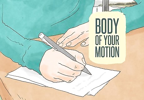 Add a notary block. If your motion includes any statements of fact, it must be notarized. You can find a form for the appropriate notary block for your state and county on the internet.