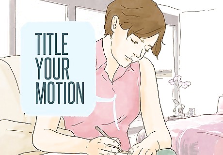 Title your motion. The title tells the court what the motion is about. To ask the judge to reverse a legal separation order, you typically would use a title such as "Motion to Dismiss" or "Motion to Vacate Order." Usually the title is centered two lines below the caption in bold-face type. Some jurisdictions format the title differently, such as underlined or in all-caps. Look at other motions filed in the same court as a guide if you're unsure.