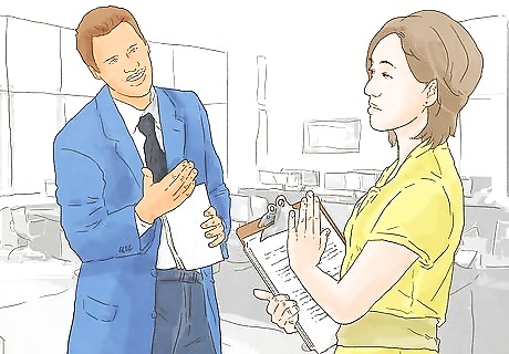 Set boundaries. When you feel discomfort, resentment, or guilt about something, it is a clear sign that it is time to set or enforce personal boundaries. There are only so many hours in the workday, and in order to be successful in your career and complete your work, you will need to be assertive in saying no to unnecessary interruptions. Set aside pleasantries, but make sure that you behave professionally. Do not encourage chatter by asking questions or showing interest in what the talkative individual is saying. Saying no to pushy and aggressive people can be difficult if you tend to be a people pleaser. Start by practicing setting boundaries with your friends and family, and you will gradually become more comfortable drawing a line in the sand with your coworkers.