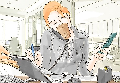 Eat a snack. Let the chatterbox know that you are heading to the break room for a quick cup of coffee, tea or a snack anytime she catches you off guard in the hallway. If she insists on joining you in the break room, you can chat for as long as it takes to prepare your cup of coffee, and then say “I really must get back to it.”