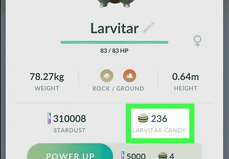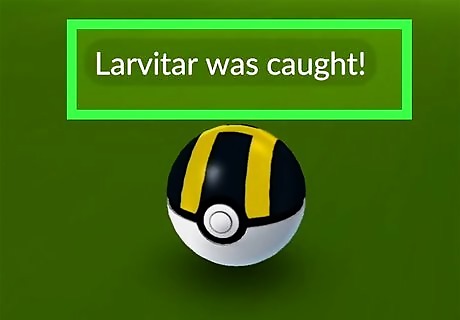 Battle with your Larvitar to level it up. Battling with your Larvitar in gyms or in the wild will get you experience towards evolving. Try to seek out what is weak against your Larvitar for battles. Larvitar is both a rock- and ground-type Pokémon and is strong against Poison (Koffing), Fire (Vulpix), Bug (Caterpie), Flying (Pidgeot), Electric (Pikachu), Rock (Geodude), and Steel (Aron). Avoid fighting Pokémon that are strong against your Larvitar. Just like the ground-type Pokémon having an advantage over electric-types, your Larvitar also has a weakness against Grass, Bug, and Water Pokémon, like Oddish, Caterpie, and Squirtle. These Pokémon have a higher chance of beating your Larvitar, which will cost you time and life-points. Use potions to help you gain experience quickly. Since you need to battle with Larvitar to level him up, keep potions on hand to heal him or rid him of lingering skills, like Poison Sting, rather than spending time at a Pokémon Center.
