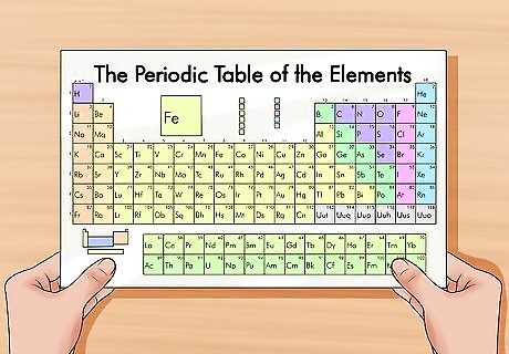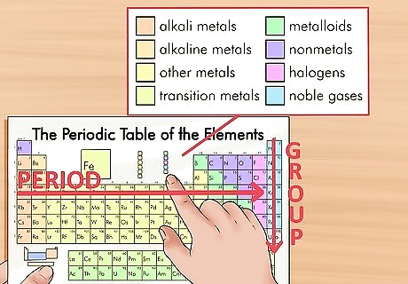 Memorize the periodic table. This may seem a little crazy, but memorizing the periodic table will help you have a fundamental understanding of the elements, how they’re arranged, and how they interact with each other. Knowing the group and period of an element gives you information about its structure, electron shells, valence electrons, and reactivity with other elements. The columns of the periodic table are called “groups” while the rows are called “periods.” The table is split up into metals and non-metals. Knowing the chemical symbol of an element will also help you when working with inorganic equations.