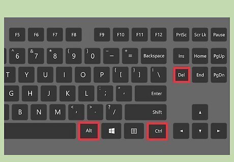 Hold down Ctrl + Alt + Del. This combination of keys will open up a screen with four options: Lock, Switch User, Sign out, and Task Manager.