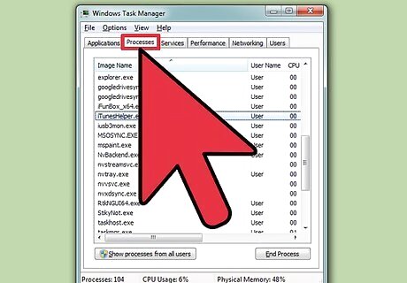 Click the Processes tab. If ending the task from the Applications tab/list, you may have to end the actual process. If you are using Windows 8, you will have to click More Details from the bottom of the Task Manager window to reveal the Processes tab.