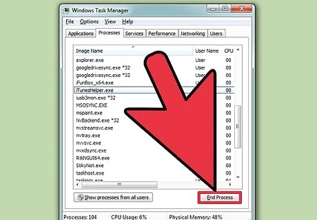 Click End Task. Once a program is selected and highlighted, click the End Task button in the bottom right-hand corner of the Task Manager window. Click End Program from the pop-up dialog box when prompted.