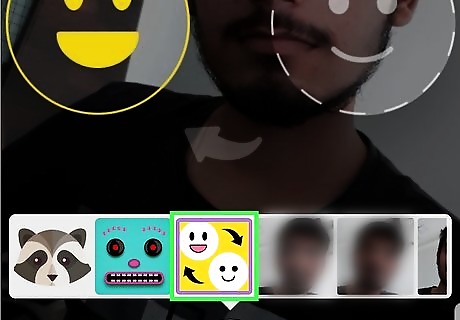 Select the face you want to swap with. You'll see all of the faces that Snapchat was able to detect in the pictures stored on your device. Selecting a face will apply it to your face immediately. You can't browse through the photos on your device. Snapchat scans your pictures to find faces to use. Because you can use any picture stored on your device, this feature allows for some creative face swapping. You can even use pictures of animated characters, if they're detailed enough to get recognized by Snapchat as faces. For example, many modern video games feature faces that are incredibly realistic, and Snapchat can pick out these faces from screenshots saved to your phone. You can download a picture of your favorite celebrity and easily swap faces using this effect as well. Try to find pictures taken directly on so that you can see the person's whole face.