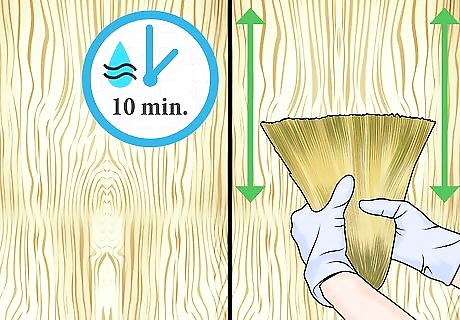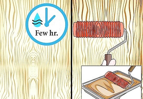 Go over the paint with a brush. When you’ve finished the first section of the second coat, use a wide brush to gently brush over the entire area to remove roller marks. This will also create a more pronounced grain effect. Continue painting and brushing in sections until the entire second coat is complete. Following the manufacturer’s directions, allow the paint to dry completely. This normally takes at least 24 hours.