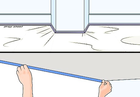 Protect surrounding areas. This is particularly important for stationary objects like walls and counters. For walls and counters, protect the floor underneath by laying down a drop sheet. Tape the drop sheet in place with painter’s tape. Protect adjacent areas by taping them with painter’s tape. This includes ceilings, walls, sinks, fixtures, and other areas touching the surface you'll be painting. For mobile objects like furniture, cabinetry, hardware, and doors, move the object to a well-ventilated space, such as a garage. Place the item on a drop sheet to protect the floor underneath.