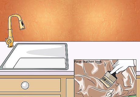 Make a surface look like leather. This is a great finish for walls and furniture when you want to transform the look of a room without having to spend too much money. As with all paint projects, the key to a successful faux leather look is giving the paint time to dry properly between coats.