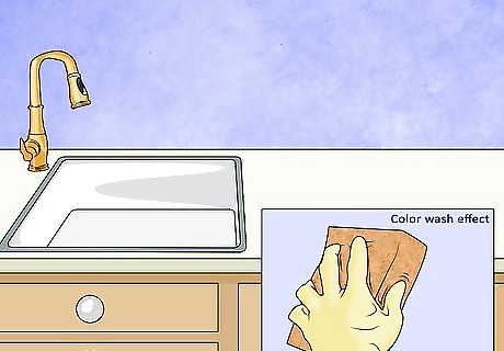Make a color wash effect. Color washing is a very popular paint finish for walls. It’s another way to achieve an aged and textured look, and it’s quite simple to execute. You can achieve a color washing look with a rag, a sponge, or a combination thereof.