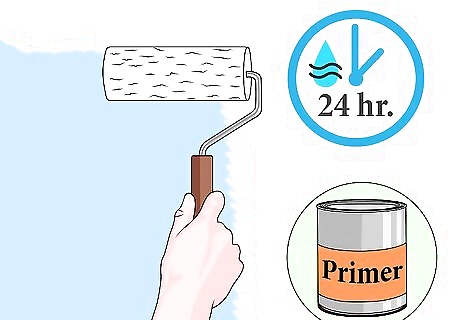 Prime the surface. Priming any surface before painting will give the paint an even surface to stick to, will cover imperfections, and will help reduce color variations in the final paint job. Choose a primer color that will complement your paint project, and use a primer suitable for the surface you're working with. Apply the primer with a roller, and use a brush to get into corners and awkward spaces and joints. Allow the primer to dry according to the manufacturer’s instructions. This usually takes at least 24 hours.