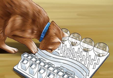 Increase the level of difficulty over time. As your cat gets better and more proficient at operating food puzzles, you need to try new and more difficult puzzles to keep your cat interested. You might try: Puzzles with smaller holes Puzzles that are opaque Puzzle that don't roll as easily (like a cube-shaped toy)