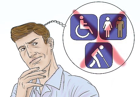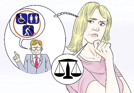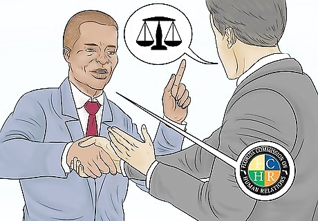 Determine whether your experience constitutes unlawful discrimination under federal law. The laws enforced by the EEOC prohibit discrimination in every aspect of employment, including job advertisements, recruitment, hiring, promotions, pay and benefits, or discipline and discharge. For example, when assigning shifts, an employer may not segregate employees on the basis of race. Age discrimination applies to employees 40 and over. For example, if an employer has to layoff a number of workers, he cannot choose the oldest workers first because of their age, and when deciding which employees to call back, he can't call back the oldest workers last because of their age. Employers must provide reasonable accommodations to disabled applicants or employees who require it. Reasonable accommodations might include providing a ramp for wheelchair access.