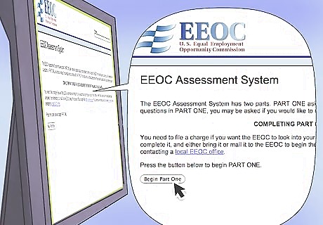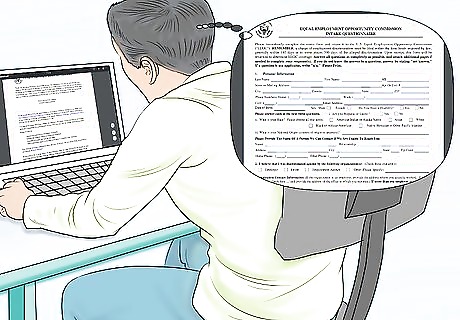 Fill out the initial Intake Questionnaire. The intake questionnaire includes contact information for you and for the employer against whom you want to file your charge, along with a brief description of the experiences you had and why you believe they were discriminatory.