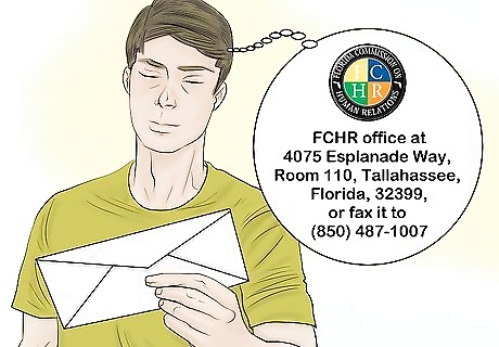 Mail or fax your TAQ to the FCHR. To file your state discrimination charge, mail your completed TAQ to the FCHR office at 4075 Esplanade Way, Room 110, Tallahassee, Florida, 32399, or fax it to (850) 487-1007.