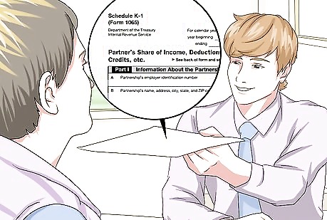 Distribute a Schedule K-1 to all partners. Once you've completed Form 1065, you'll give a Schedule K-1 to each partner so they can include their share of partnership profit or loss on their personal taxes. A Schedule K-1 is roughly the equivalent of a W-2 for an employee or wage earner, except that it shows partner's share of any profit or loss from the LLC. Each partner is responsible only for taxes on their individual share of any profits.